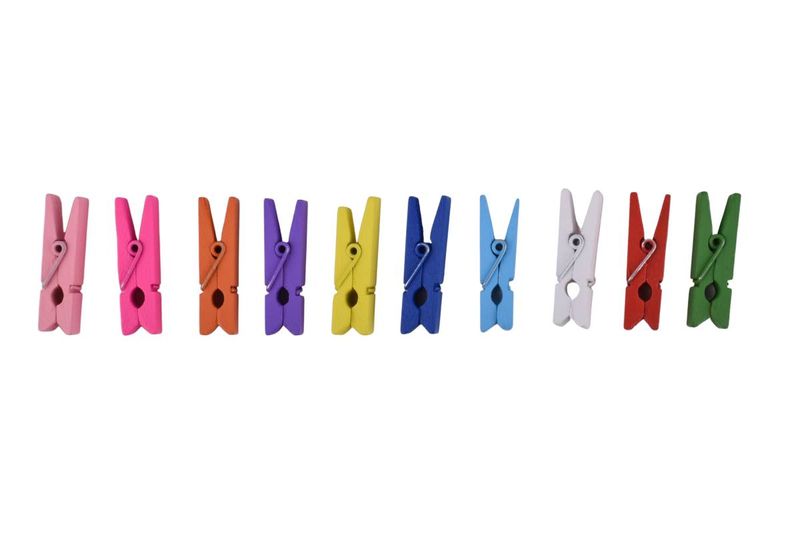Broches Mini de Madera Color por 36 unidades, ideal para suvenir, decorar tu escritorio, apuntes, colgar fotos, tener en la oficina, etc.