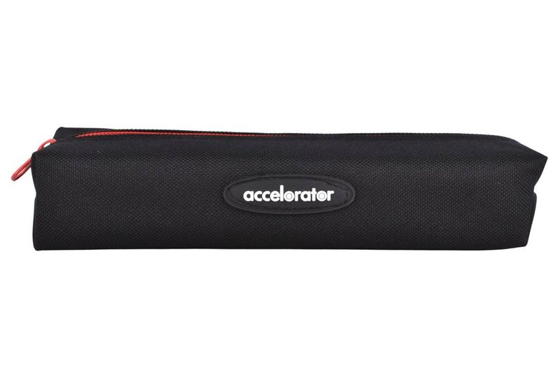 Canopla Accelorator con forma de tubo. Fabricada en tela ultra resistente y reforzada. Cuenta con un cierre con aplique. Ideales para llevar tus cosas con todo el estilo que ésta completa línea ofrece.
