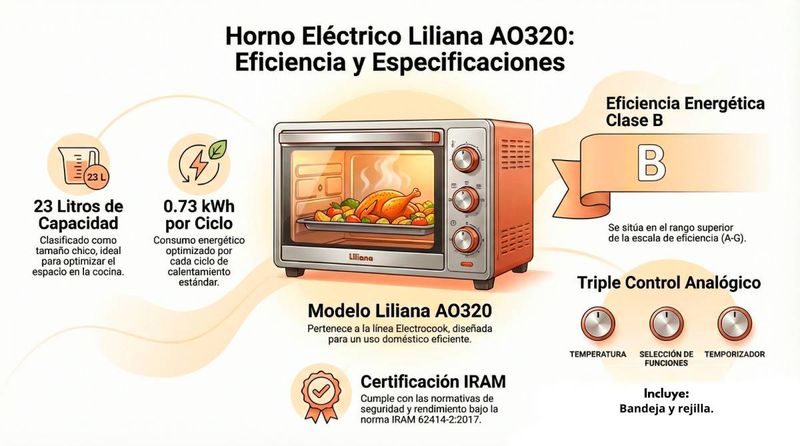 Horno eléctrico Liliana de 32 litros, ideal para cocinar, gratinar y hornear de forma práctica en el hogar, con controles manuales simples y diseño compacto. Apto para hornear pizzas, tartas, carnes, vegetales y preparaciones dulces o saladas en cocinas domésticas.