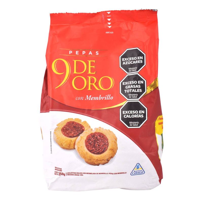 Las Galletitas Pepas con Membrillo 9 De Oro son una deliciosa opción para acompañar el desayuno o la merienda, con un relleno suave y dulce que las hace irresistibles. Ideales para disfrutar en cualquier momento del día.