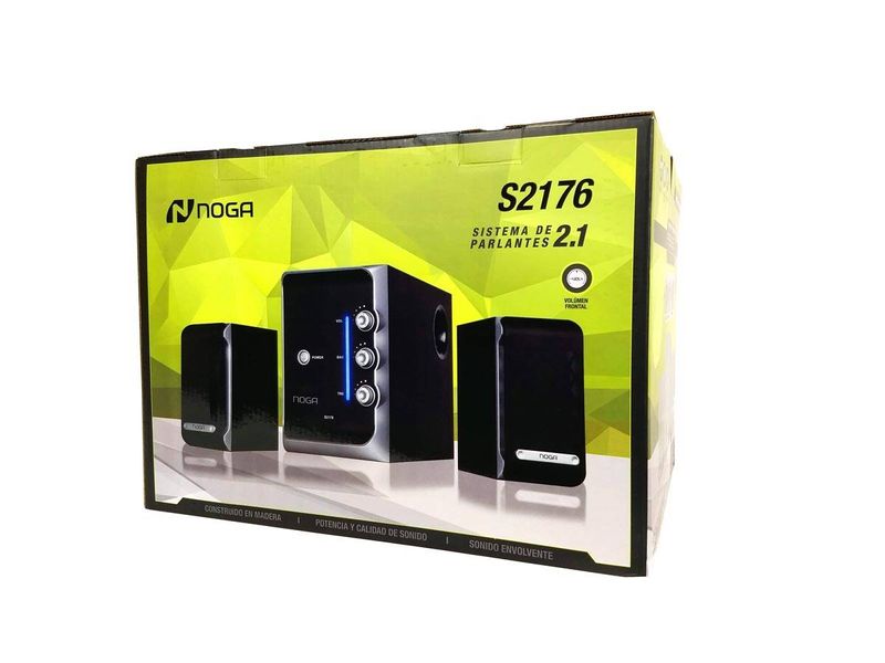 Parlante Noga Home Theater 2.1 S2176 con subwoofer de madera y sonido envolvente. Ideal para PC o TV. Potencia y claridad. Cómpralo en Ferniplast.com.