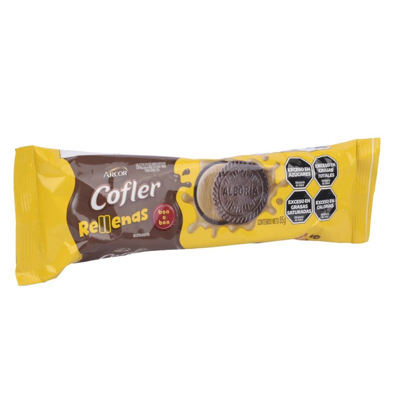 Galletas Cofler. Sumérgete en la experiencia sensorial que ofrece la Cookie Cofler Rellena Bon o Bon de Arcor, un deleite que combina la textura crujiente de una galleta recién horneada con el relleno cremoso y distintivo del clásico Bon o Bon.