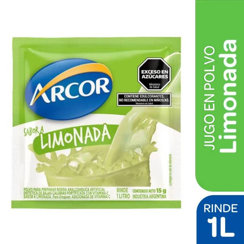 Jugo Arcor en Polvo Sabor Limonada 20g. Rinde 1 Litro, es Bajo en Azúcares y Fuente de Vitamina C.