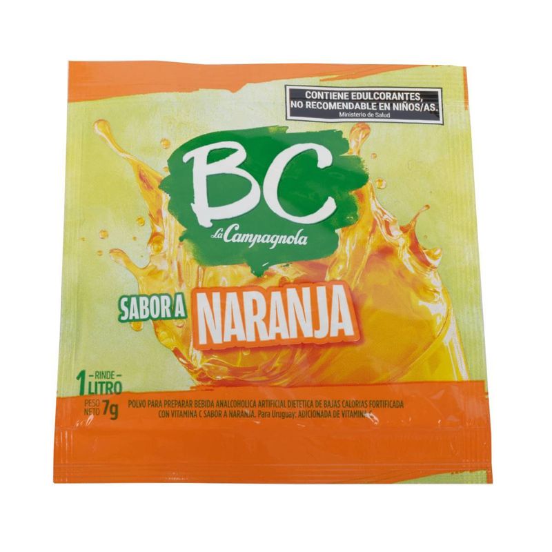 Sobre de jugo en polvo para preparar BC, sabor naranja. ¡Ideal para disfrutar de un rico refresco! Sin Azúcares y Con Vitamina C