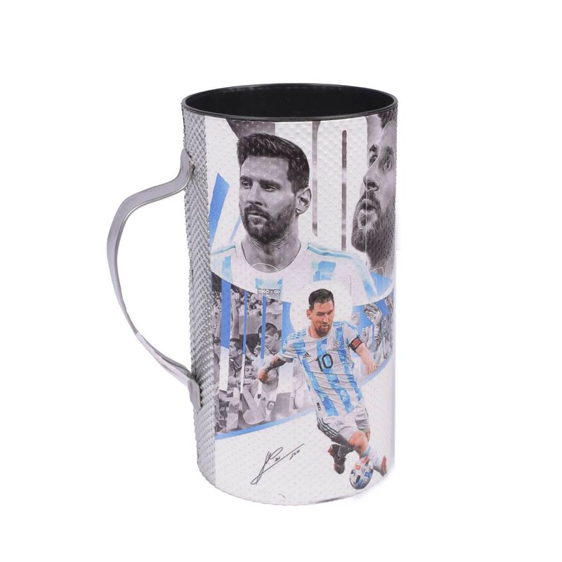 Vaso Güiro estampado de acero, varios diseños. Posee manija y peineta, y su interior esta fabricado en plástico negro ¡Combina el sabor de tu bebida favorita mas el ritmo del patrón musical que mas te guste!