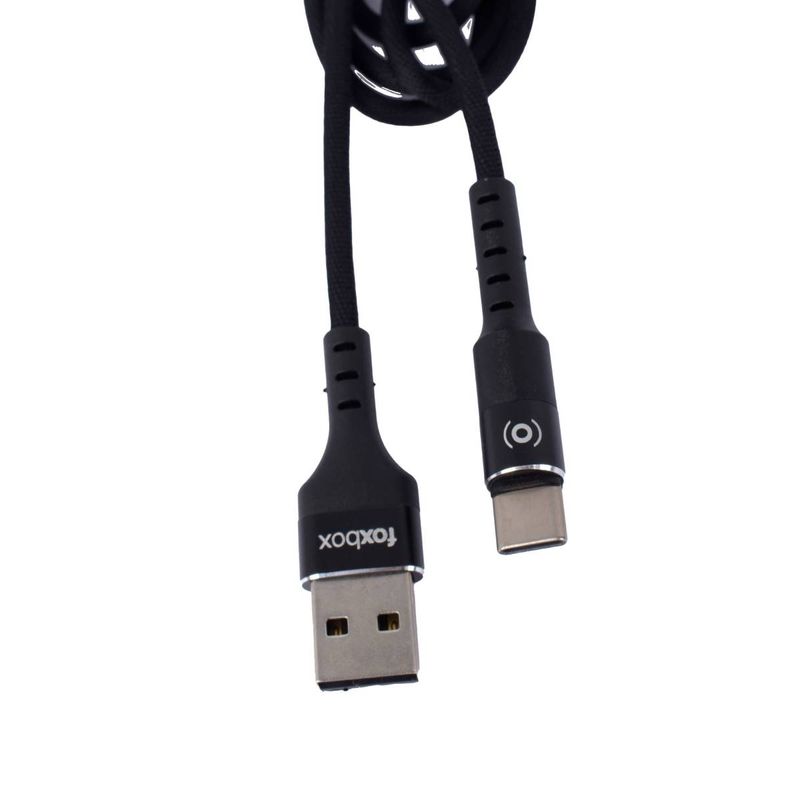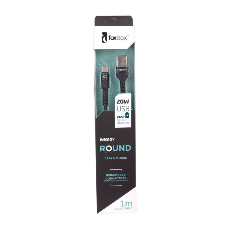 Cable USB Tipo C Foxbox de 1 metro. Soporta carga rápida de 20W y transferencia de datos. Conectores reforzados para mayor durabilidad.