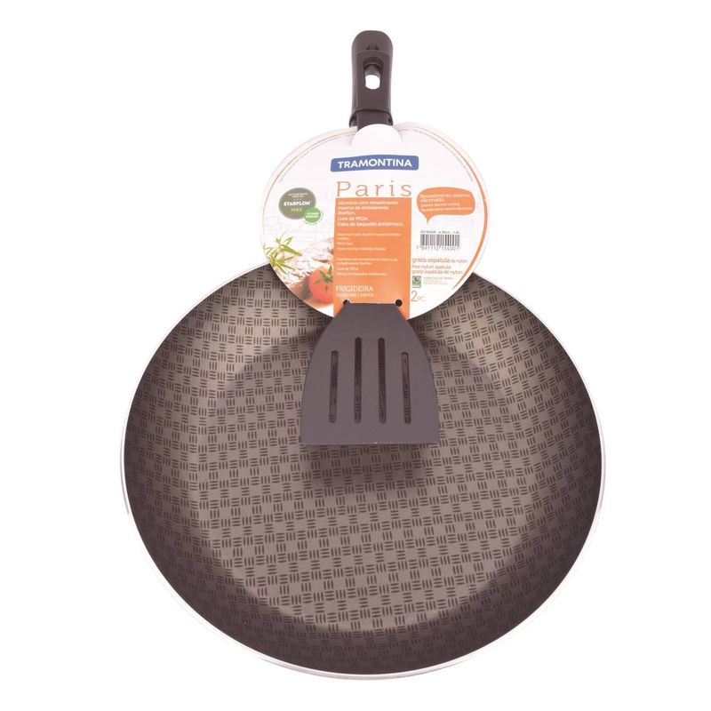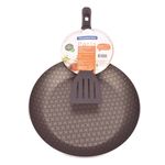 Sartén de 26 cm de diámetro con antiadherente para cocinar con menos aceite y limpiar fácil. Incluye espátula para usar al instante.