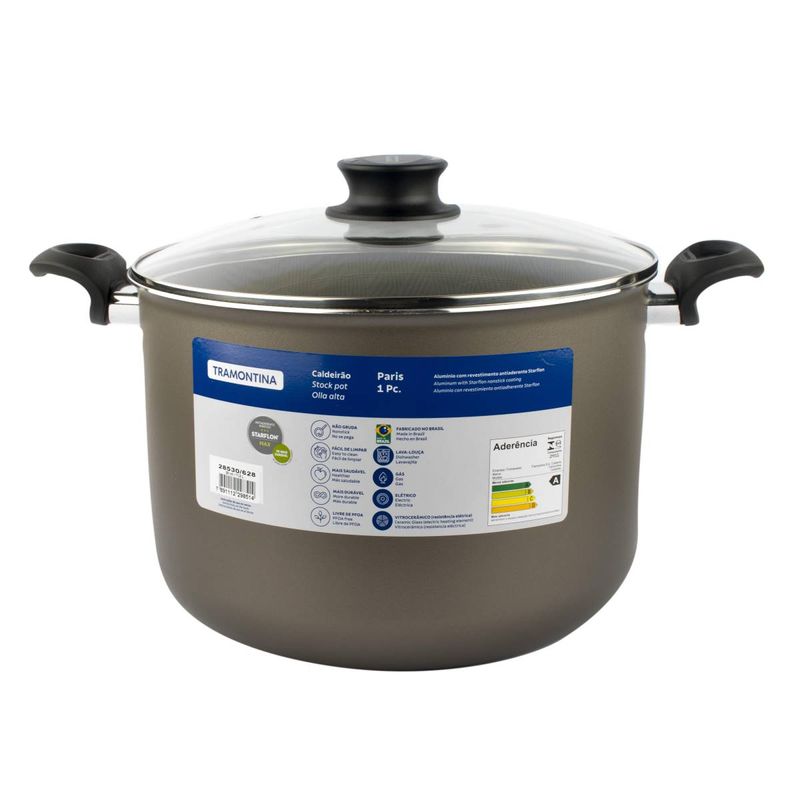 Olla alta Tramontina Paris Texture de 28 cm, ideal para preparar grandes cantidades con cocción uniforme y limpieza sencilla. Indicada para cocinar guisos, sopas, pastas y comidas abundantes, tanto para el uso diario como para reuniones familiares.