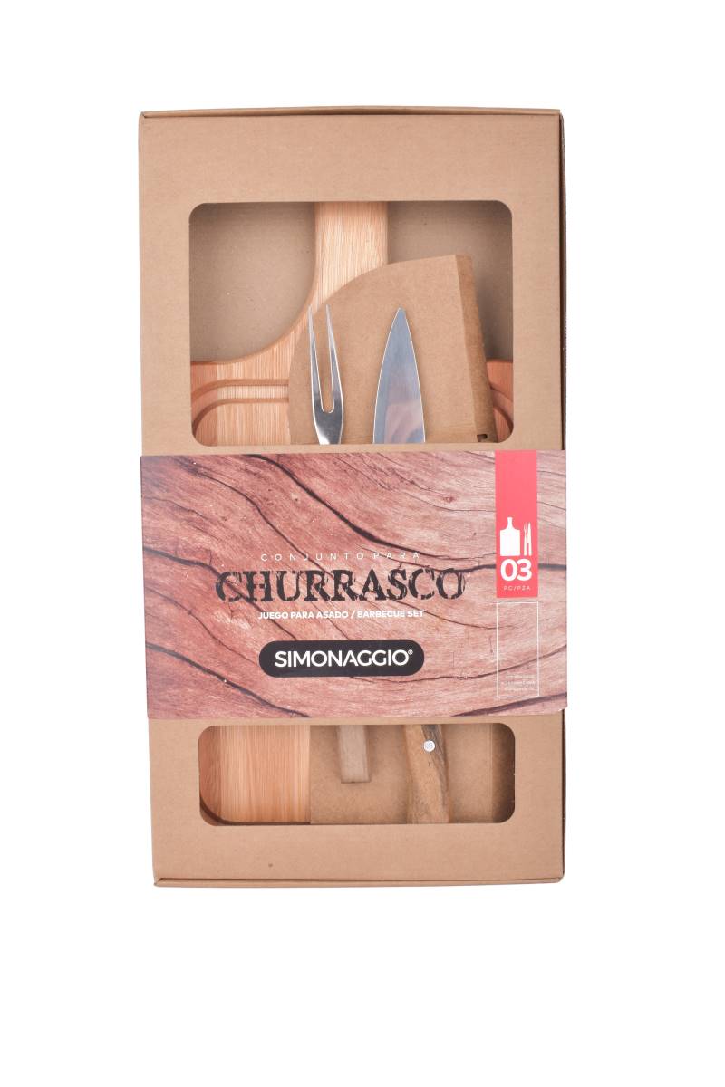 Disfruta de tus asados con este práctico set Simonaggio Churrasco de 3 piezas. Incluye una tabla, un cuchillo afilado y un tenedor robusto, ideales para cortar y servir tus carnes a la parrilla con estilo y comodidad.