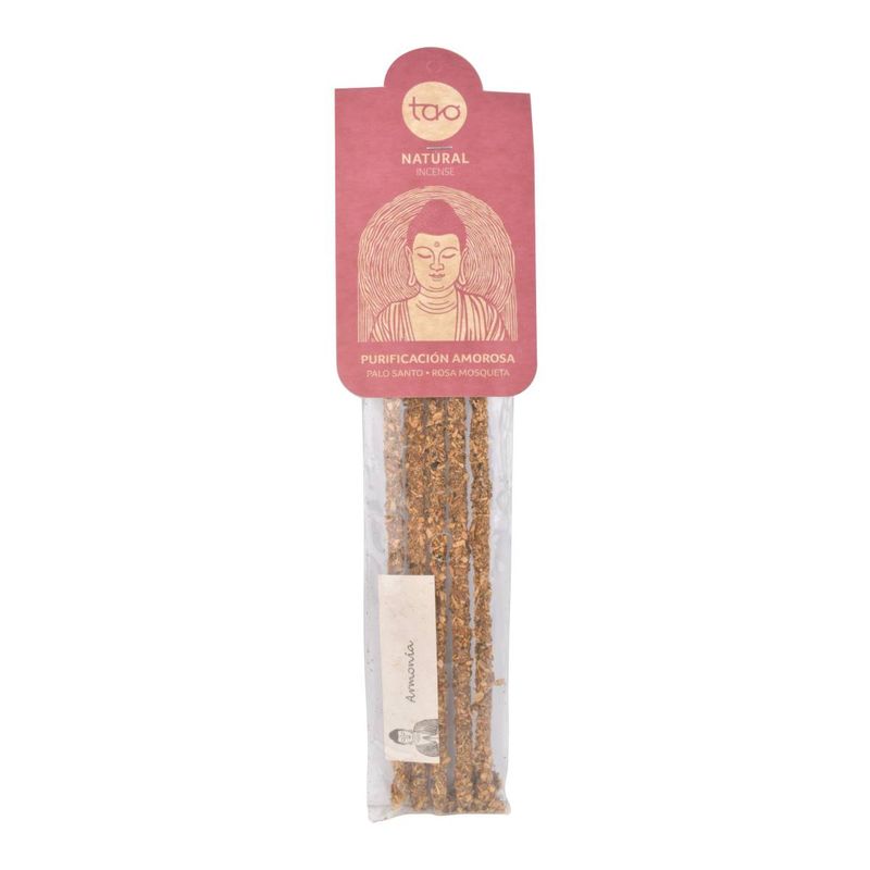 Experimenta la purificación amorosa y la armonía con el sahumerio de Palo Santo y Rosa Mosqueta de TAO Natural. Su aroma dulce y floral te envuelve en una atmósfera de amor y paz.