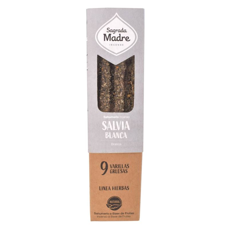Sahumerio de salvia blanca Sagrada Madre, elaborado artesanalmente con salvia blanca natural. Ideal para limpiar y purificar tus espacios, eliminando energías negativas y promoviendo la armonía.