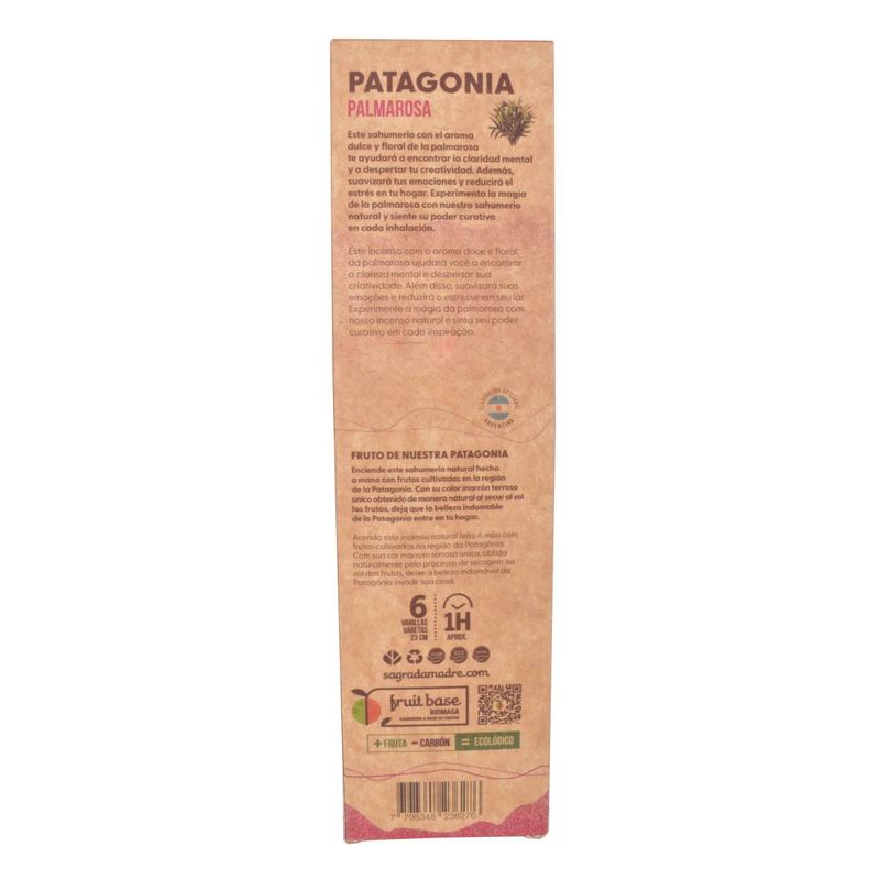 Encuentra la claridad mental y la paz interior con el incienso de Palmarosa de Patagonia de Sagrada Madre. Hecho con ingredientes naturales de la Patagonia, este incienso es ideal para relajarte y concentrarte.