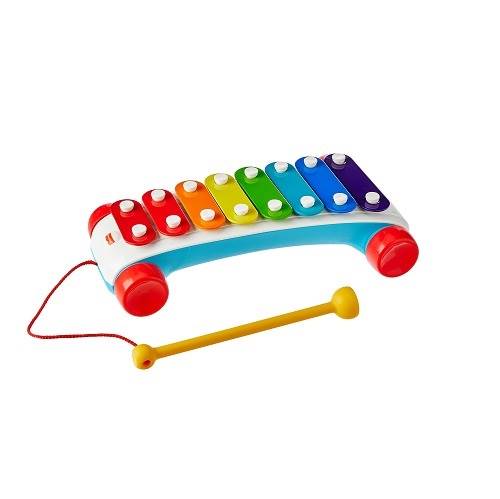 El xilofón clásico de Fisher-Price es un juguete lleno de nostalgia y aprendizaje. Con sus teclas de colores brillantes y su práctico martillo atado, invita a los más pequeños a explorar el mundo de los sonidos y la música de una forma divertida y segura.