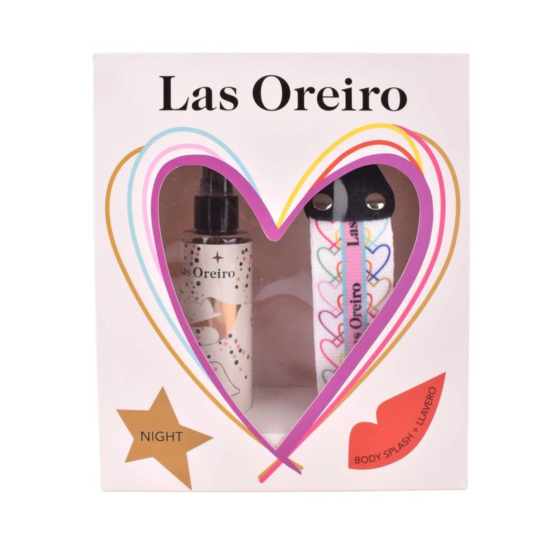 Un toque de glamour para todos los días. El pack Las Oreiro Night B incluye un body splash de 100 ml con una fragancia femenina, vibrante y moderna, más un llavero exclusivo con el estilo inconfundible de la marca. Ideal para regalar o darte un mimo con actitud.