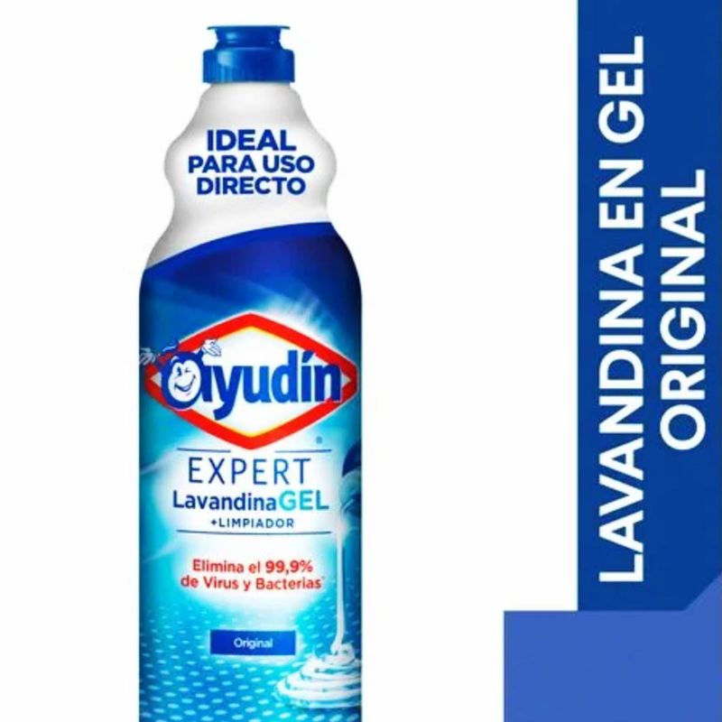 Lavandina Ayudín Gel Original 750 ml. Limpieza profunda, control de aplicación y eliminación del 99,9% de virus y bacterias. Cómprala en Ferniplast.com.