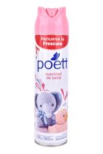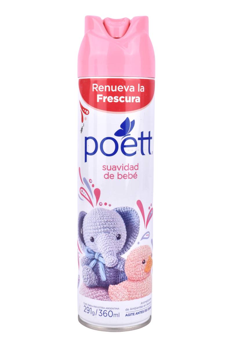 Renueva la frescura de tu hogar con Poett Suavidad de Bebé. Este desodorante de ambientes en spray de 360ml deja un delicado aroma a bebé, ideal para un ambiente acogedor.