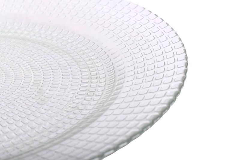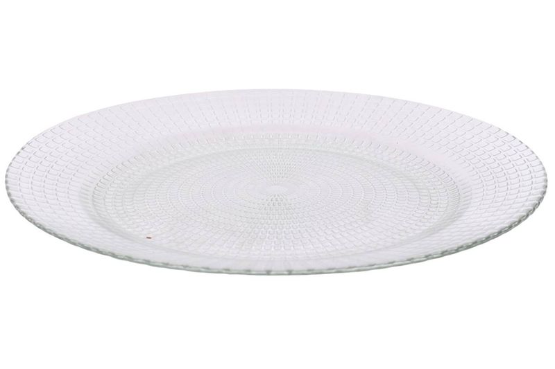 Set de 6 platos playos de vidrio texturado Durax, ideales para uso diario y ocasiones especiales. Perfectos para servir comidas principales, pastas, ensaladas y platos fríos o calientes.