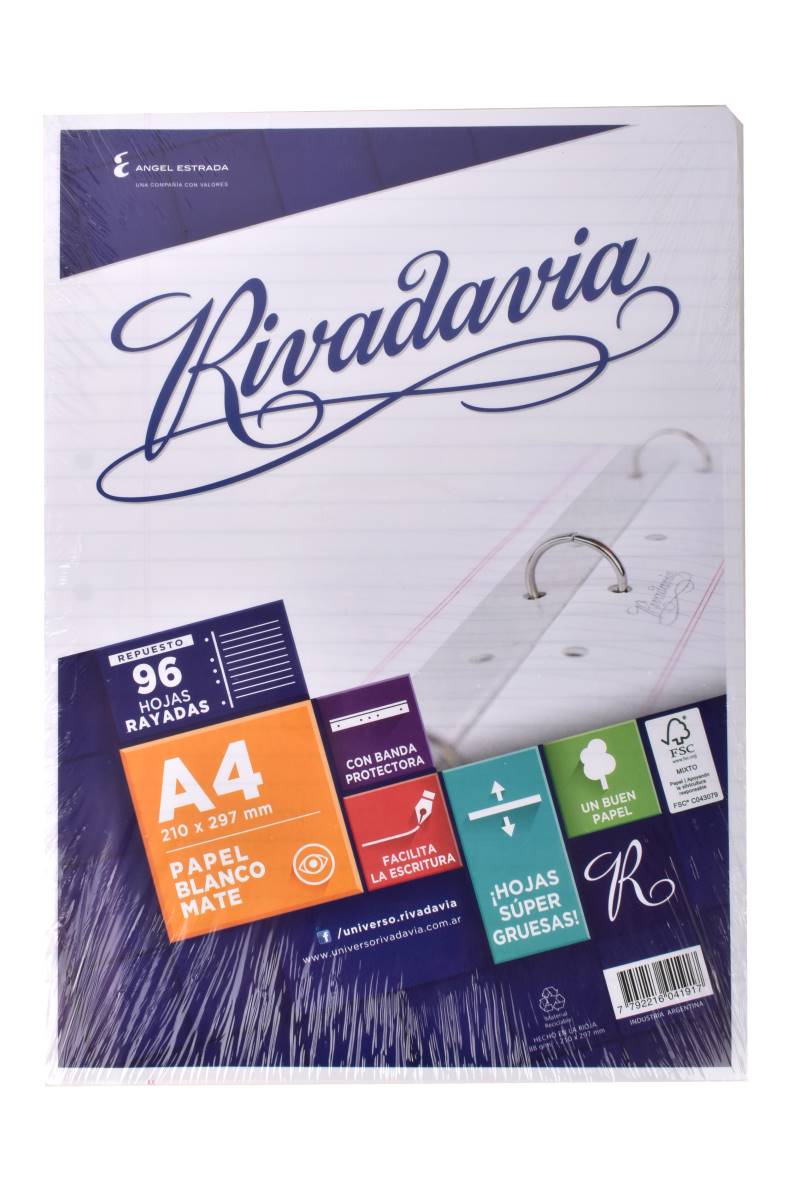 Repuesto de hojas tamaño A4 por 96 unidades