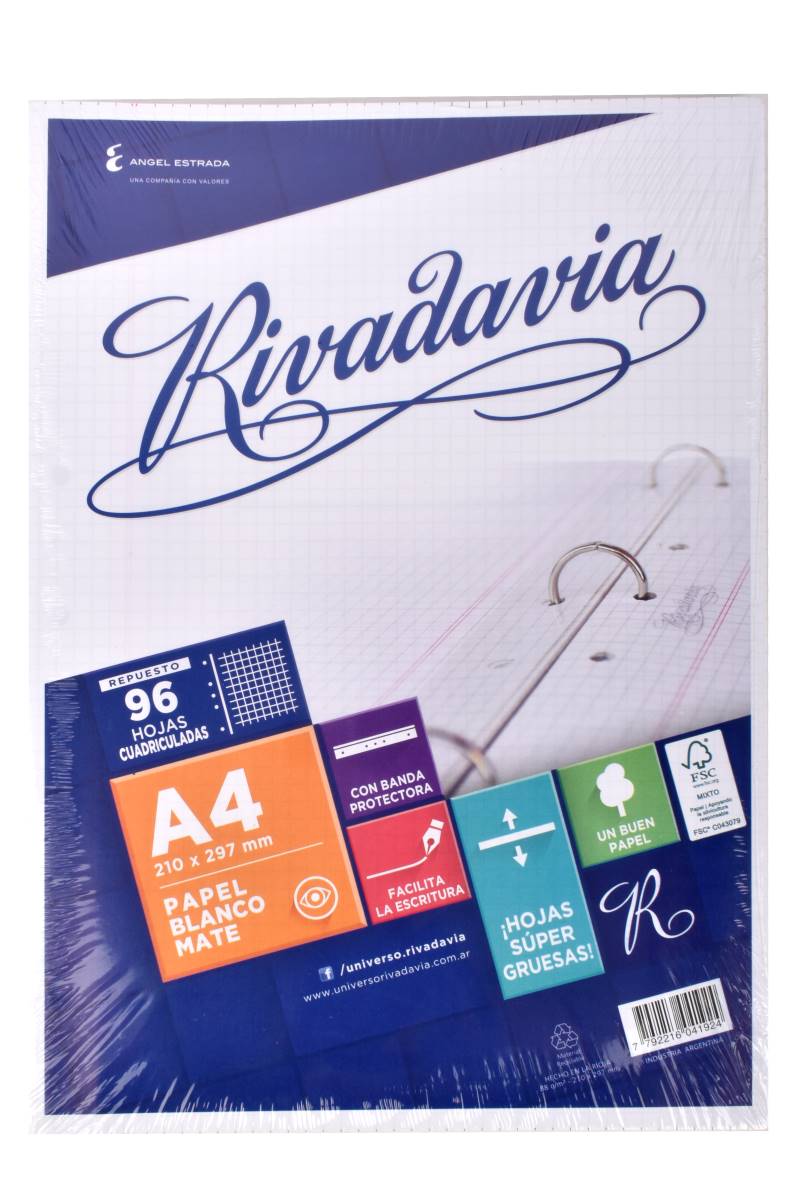 Repuesto de hojas tamaño A4 por 96 unidades