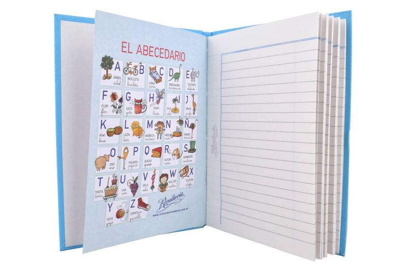 Cuaderno tapa dura Rivadavia 50 hojas rayadas color celeste, con tapa vinílica lavable y papel blanco mate. Ideal para la escuela. Cómpralo en Ferniplast.com