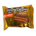 Alfajor Terrabusi torta relleno con dulce de leche, bañado en chocolate de repostería. Ideal para disfrutar de un bocadillo rápido en cualquier momento del día