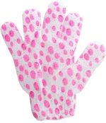 Guante exfoliante Jessamy, limpia con profundidad, eliminando residuos de maquillaje y al mismo tiempo realiza masaje exfoliante.