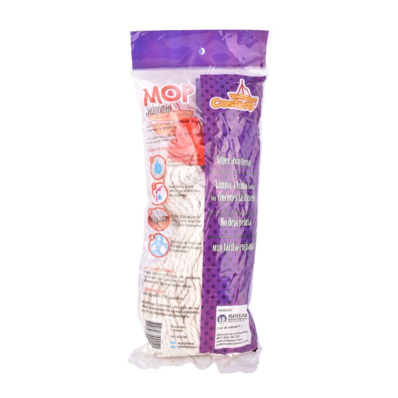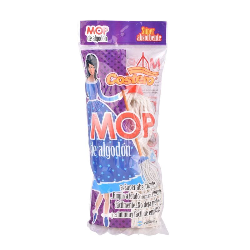 Mopa Costero de algodón blanca, ideal para limpiar pisos y superficies con eficacia y suavidad.