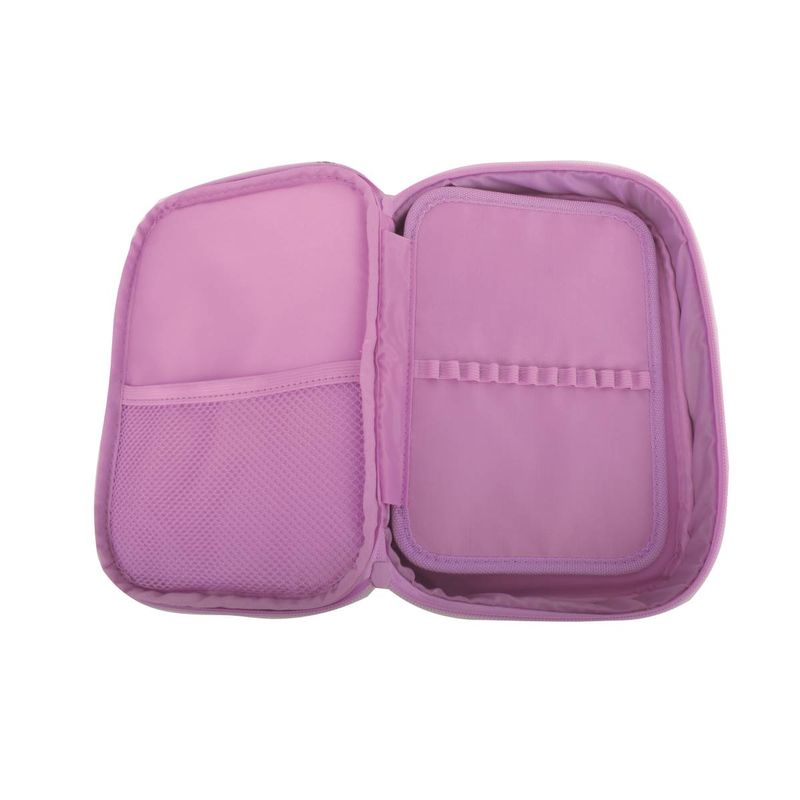 - Interior organizado: Cuenta con un bolsillo de malla para guardar lápices, bolígrafos, borradores y otros objetos pequeños de forma ordenada.