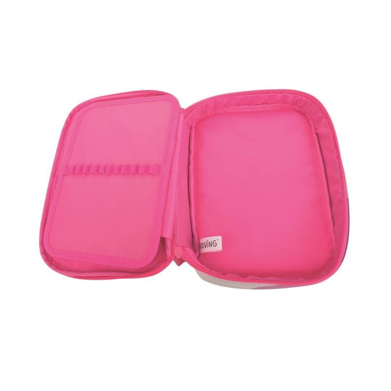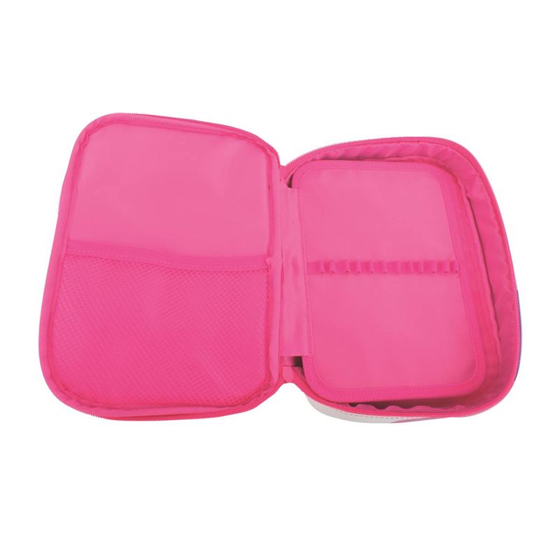 - Interior organizado: Cuenta con un bolsillo de malla para guardar lápices, bolígrafos, borradores y otros objetos pequeños de forma ordenada.