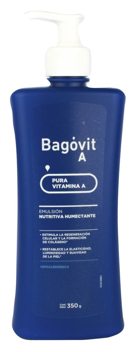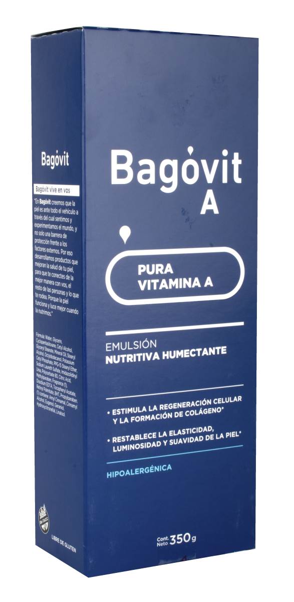 Bagóvit A Emulsión 350 g hidrata y revitaliza la piel con Vitamina A y dosificador práctico. Nutrición diaria para piel seca. Cómprala en Ferniplast.com.