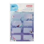 Etiquetas escolares autoadhesivas. Posee gráficos alusivos a todo color de Frozen. Vienen dos planchas de ocho unidades (motivos surtidos). Ideal para pegar en cuadernos o carpetas.