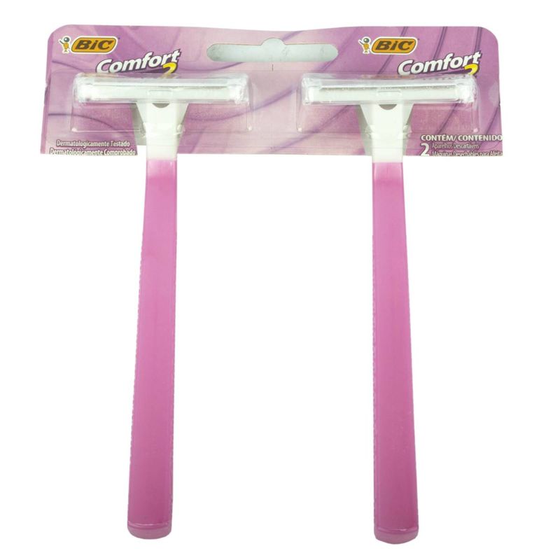 Máquinas de afeitar Bic Comfort 2 Women x2, descartables y dermatológicamente comprobadas. Ideales para depilación corporal. Cómpralas en Ferniplast.com