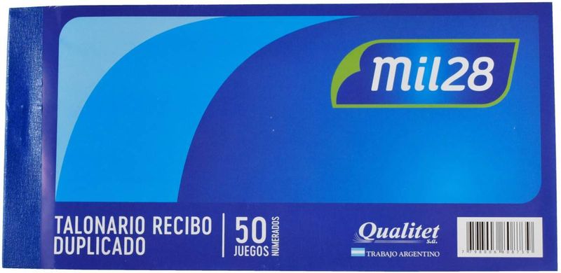 Talonario de recibos MIL28. Contiene 50 juegos numerados, posee una base de cartón duro que lo hace más cómodo y efectivo para escribir sobre el mismo