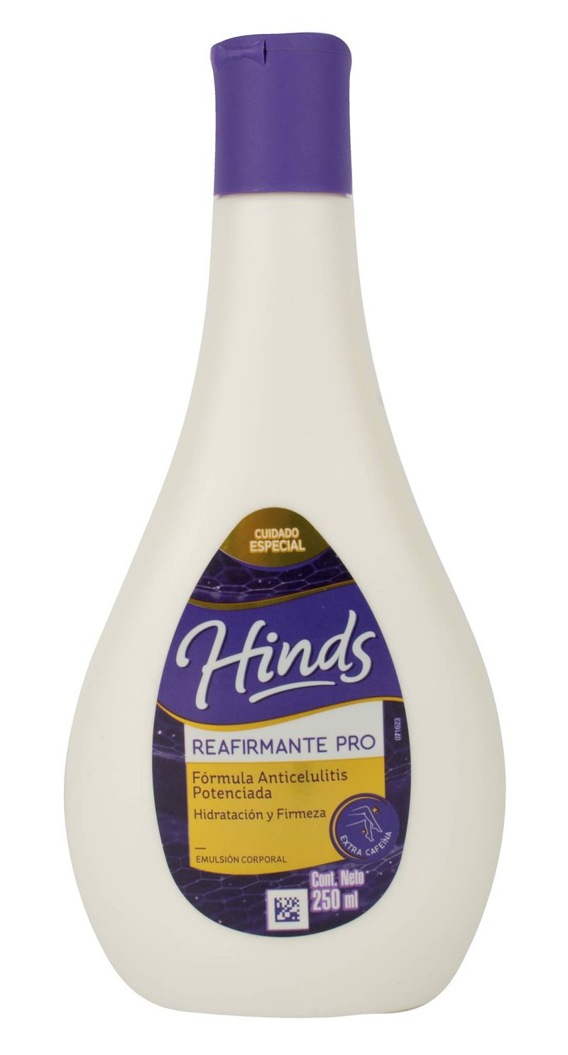 Crema corporal Hinds reafirmante. Ofrece una extra hidratación y combate las celulitis gracias a su exclusiva formula anti celulitis potenciada. Deja tu piel tersa y con una única fragancia.
