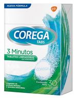 Tabletas limpiadoras Corega Tabs 3 Minutos por 30 unidades, para una una prótesis limpia, fresca y brillante.