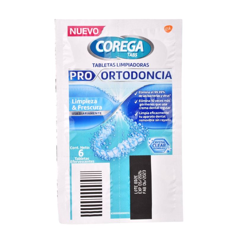 Mantené tus prótesis dentales y aparatos de ortodoncia limpios y libres de residuos con las Tabletas Corega Pro Ortodoncia. Su fórmula potente elimina placa, restos de comida y bacterias, proporcionando frescura y protección durante todo el día. Ideales para quienes usan ortodoncia, garantizan una higiene efectiva y contribuyen a mantener una boca saludable y libre de malos olores.