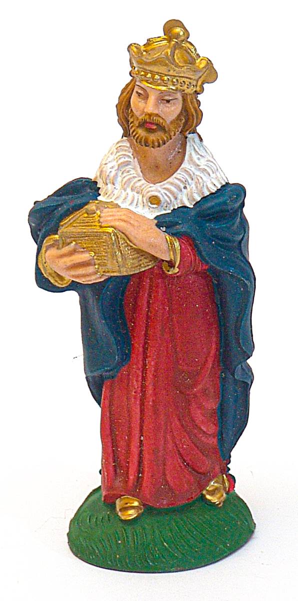 Incorporá al pesebre esta figura del Rey Melchor de yeso de 10 cm, pintada a mano y con detalles artesanales. Figura decorativa esencial del pesebre, representando al Rey Melchor con su ofrenda de oro.