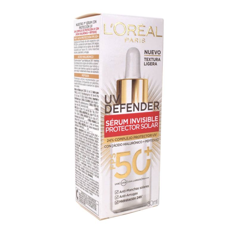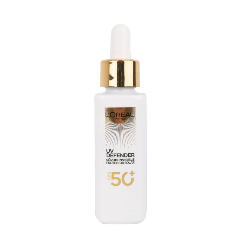 Sérum facial L’Oréal UV Defender FPS50+ en textura ligera. Protege, hidrata y unifica la piel todos los días. Descubrilo y compralo en Ferniplast.com.