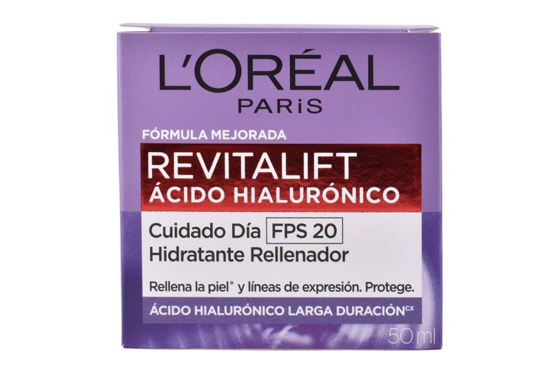 Revitalift Ácido Hialurónico Día FPS 20. Rellena líneas de expresión e hidrata por 5 días. Con protección solar diaria. Piel firme y elástica. Cómprala en Ferniplast.com.