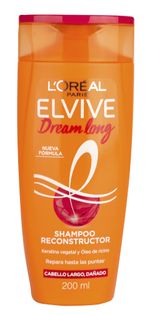 Shampoo Elvive Dream Length. Con su poderosa fórmula cremosa reparadora, es perfecto para decir adiós a los largos que se afinan y se dañan. Su fórmula está enriquecida con un poderoso cóctel de oleo de recino y keratina vegetal.