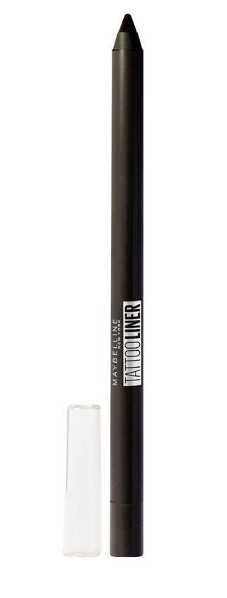 Lápiz delineador de ojos Maybelline modelo Tattoo Liner. color negro intenso. contenido neto 1.3g. Efecto gel.