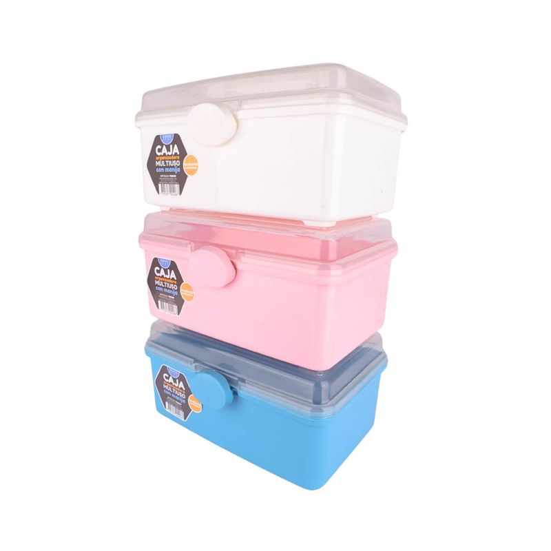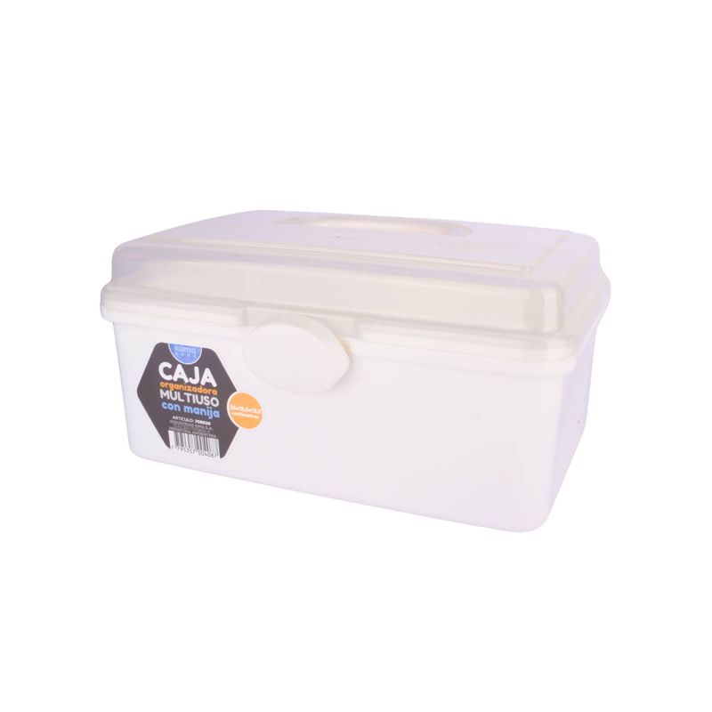 Caja multiuso con manija, ideal para organizar y transportar tus objetos de forma práctica y segura. Su diseño compacto y ligero, con manija resistente, la convierte en un complemento perfecto para tu hogar. ¡Mantén tus espacios ordenados y lleva tus objetos contigo con facilidad!