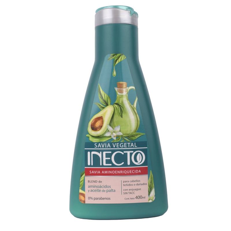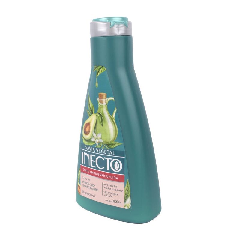 Savia vegetal Inecto Savia Aminoenriquesida por 400ml, repara el cabello dañado y protege el color del cabello teñido, para que quede brilloso y humectado.