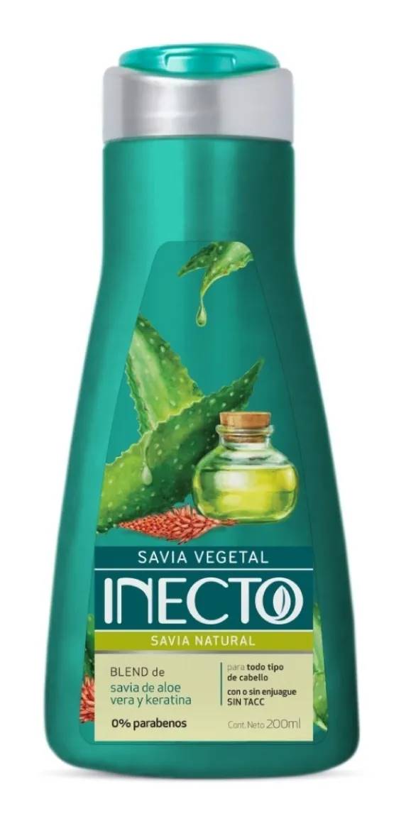 Savia vegetal Inecto Natural por 200ml, retiene la resequedad del cabello y fortalece las cutículas, evitando el resquebrajamiento.
