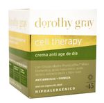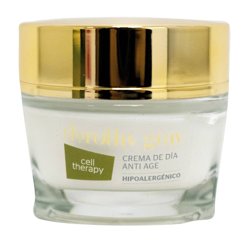 Crema Dorothy Gray Cell Therapy Dia. Fórmula con células madre, malus domestica, acido hialurónico, acido latico, extracto de te y filtro solar. Disminuye las arrugas y líneas de expresión, rejuveneciendo la piel del rostro. Combate el envejecimiento cronológico y mantiene la piel hidratada durante 24 hs. Crema suave y liviana de mayor absorción.