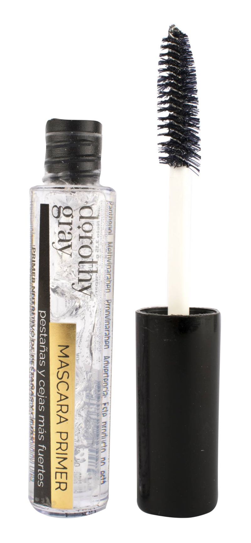 Máscara primer de pestañas Dorothy Gray, enriquecido con D-pantenol. Genera un volumen espectacular pestaña a pestaña. Puede utilizarse solo o un paso anterior a aplicar la máscara. Conseguirá potenciar el resultado de tu máscara, haciendo que el mismo sea más intenso y protegiéndolas. Nutre y acondiciona con una fórmula ligera. También fija y le da forma a tus cejas.