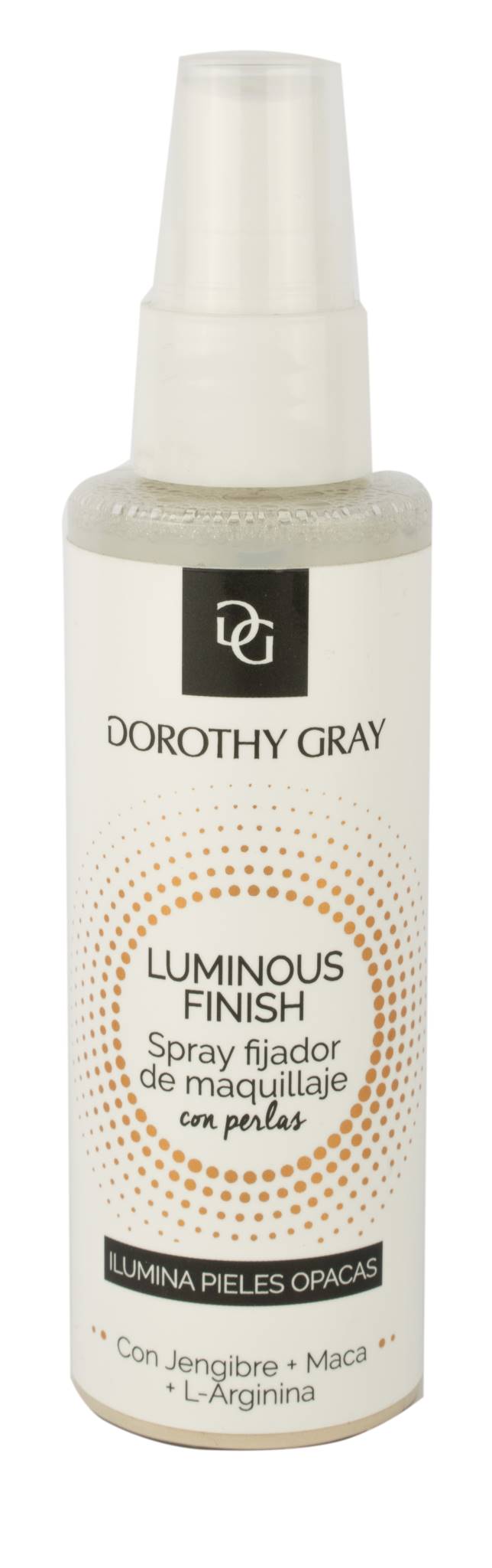 Spray fijador de maquillaje hidratante Luminous Finish con perlas.