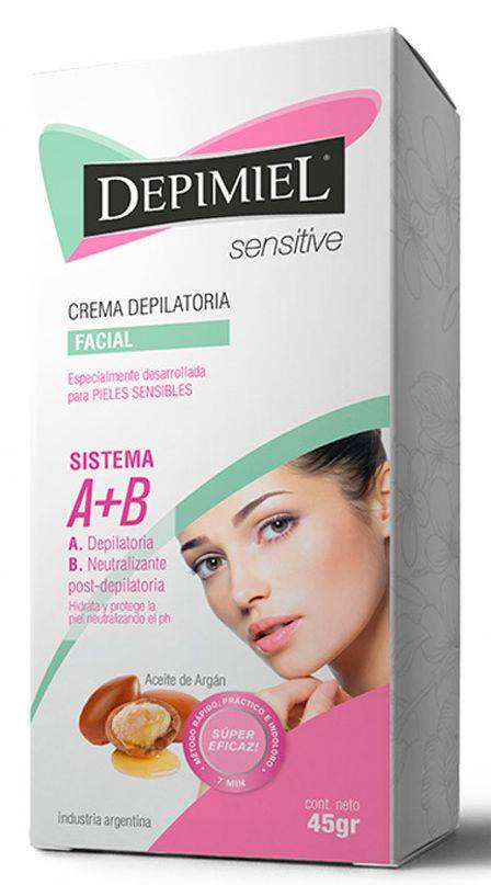 Crema depilatoria facial Depimiel x 45gr sensitive, sistema depilatorio que hidrata y protege la piel, neutralizando el PH