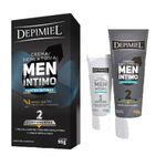 Crema Depilatoria Men Intimo, contiene 1 película protectora pre-depilatoria, 1 crema, sin cortes y sin dolor, desarrollada para la depilación de partes intimas.