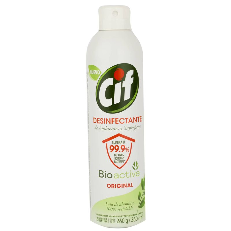 Desinfectante de ambientes y superficies Cif en aerosol Original.